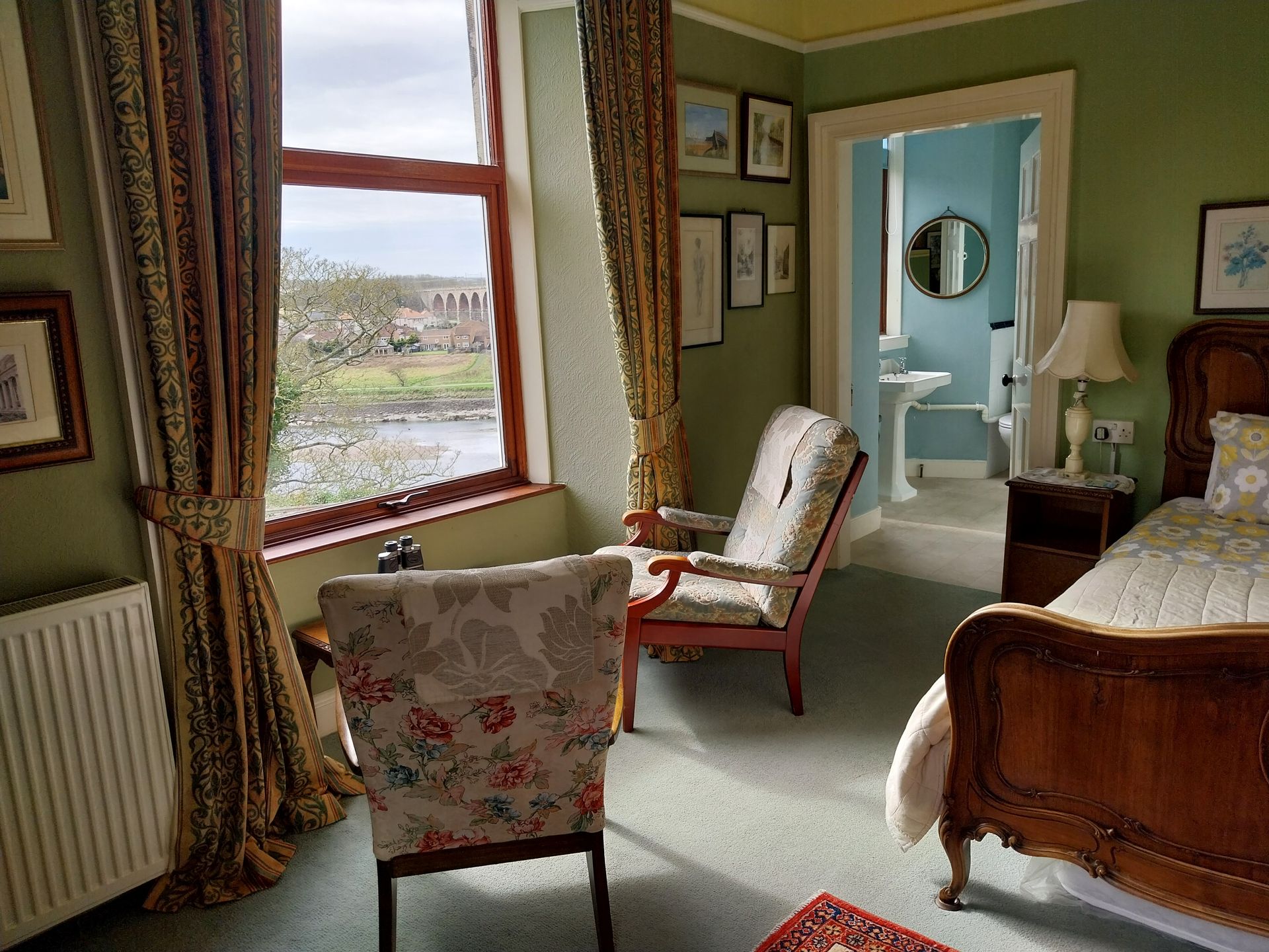 This is a very spacious room with king-size bed and en suite shower room. This room features two large windows overlooking the Tweed, the Stephenson Viaduct and the Old and Royal Tweed bridges.
